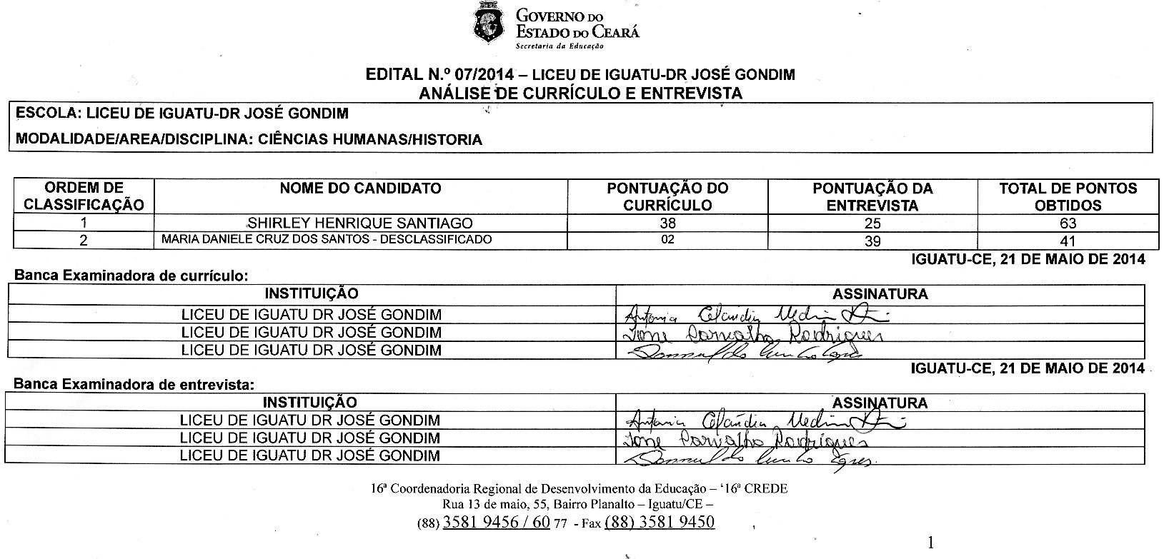 Resultado do Edital nº 07/2014 – Liceu de Iguatu